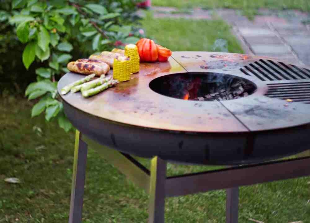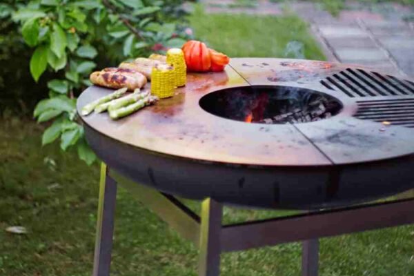 Pero no se trata solo de cocinar: este modelo también funciona como un precioso elemento decorativo para tu zona exterior. Cuando no está en uso, puede cubrirse y utilizarse como mesa auxiliar o como pieza decorativa. Y cuando llega el momento de encender el fuego, su diseño especial ayuda a dirigir el humo lejos de tus invitados, garantizando una experiencia agradable y cómoda.